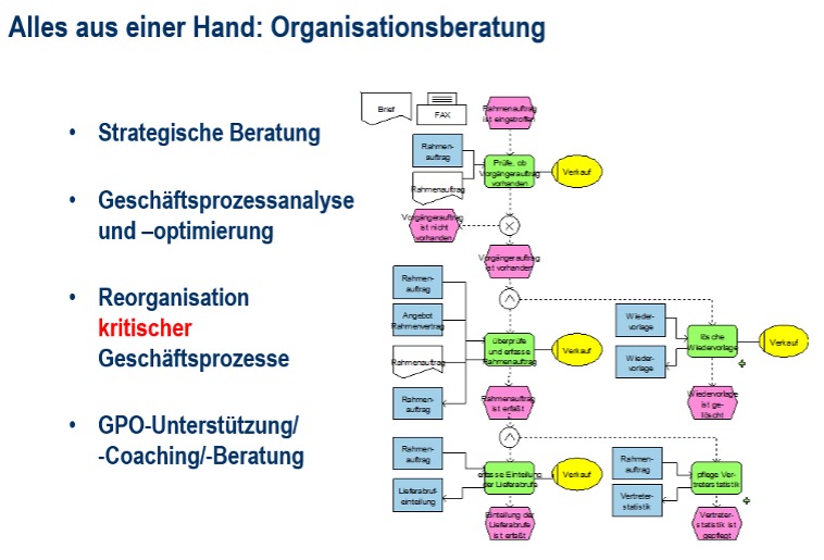 In den meisten Geschäftsprozessen steckt oftmals Verbesserungspotenzial. Entscheidend ist, die kritischen Prozesse zu identifizieren und mit Blick auf das Machbare zu optimieren. Typische Prozesse sind z.B. die Anfragebearbeitung, Auftragsbearbeitung, Produktionsplanung oder der Versand.